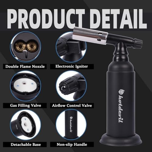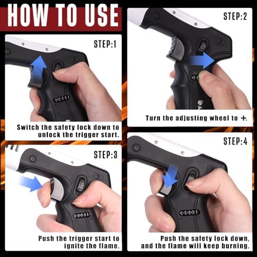 Butane Torch Lighter Gun 6g Refillable Tank Kitchen Blow Torch Lighter for Cooking with Adjustable Flame&Safety Lock Gun Hand Cooking Torch Lighter for BBQ Creme Brulee Baking Excluded Butane