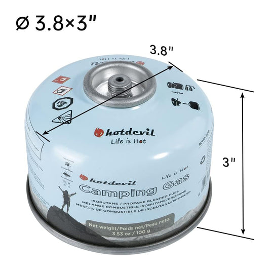 Isobutane Fuel Canister 100 Gram Camping Stove Fuel Butane Canister Backpacking Fuel Light-weight Camping Fuel Mini Camp Stove Fuel 3.53oz (2,4,6,12 or 24 pack)