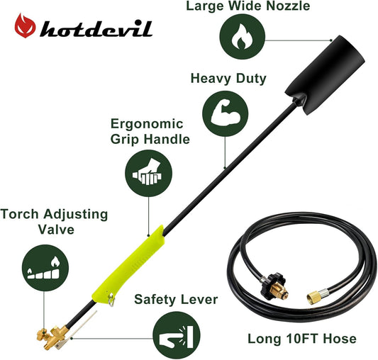 Propane Weed Torch with 10FT Hose Heavy Duty Weed Burner Flamethrower Propane Torch Kit Blow Torch Garden Torch Flame Weeder Torch for Propane Tank Adjustable Flame for Wood Snow Road