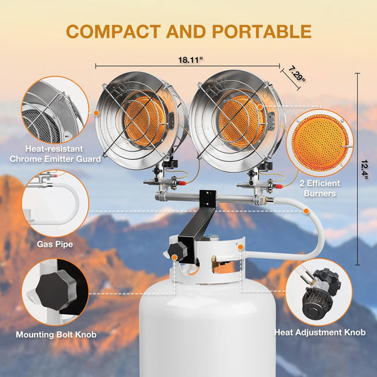 Double Tank Top Outdoor Propane Heater with Shut-off Valve and Tip-over Switch Propane Patio Heater Durable Outdoor Heaters for Patio, Camping, Garage, Porch, Outdoor Sports Event