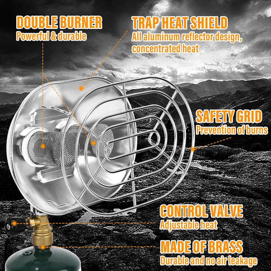 Portable Heater Double Burner Camping Outdoor Space Propane Power Heater with Control Valve Patio Heater Cordless 1lb Small Propane Tank Holder Tent Fishing Garage indoor (Fuel not included)