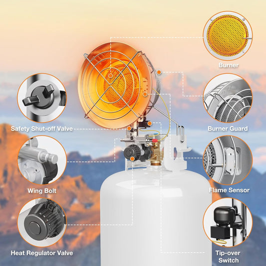 Portable Propane Heater - Adjustable Heat for Indoor & Outdoor Use, Patio Heater with Tip-Over Safety