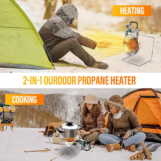 2 in 1 Tent Heater for Camping Outdoor Propane Heater Fuel on 1lb Propane Gas Tank & 20-40lb POL Adapter LP Tanks Portable Golf Cart Heater with Safety Shut-off Valve Tip-over Switch