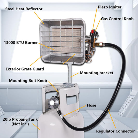 Outdoor Propane Tank Heaters 13000 BTU with Safety Shut-off Valve & Tip-over Switch Ceramic Heat Small Propane RV Garage Space Heater Portable Heater for Camping Camper Patio Gas Cordless LP