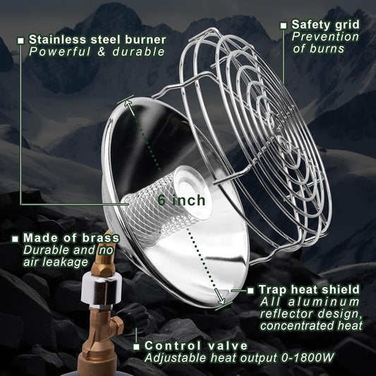 Portable Propane Tent Heater for Camping Outdoor - 6200BTU Power With Control Valve & Gas Tank Holder - Cordless for Tents, Hunting