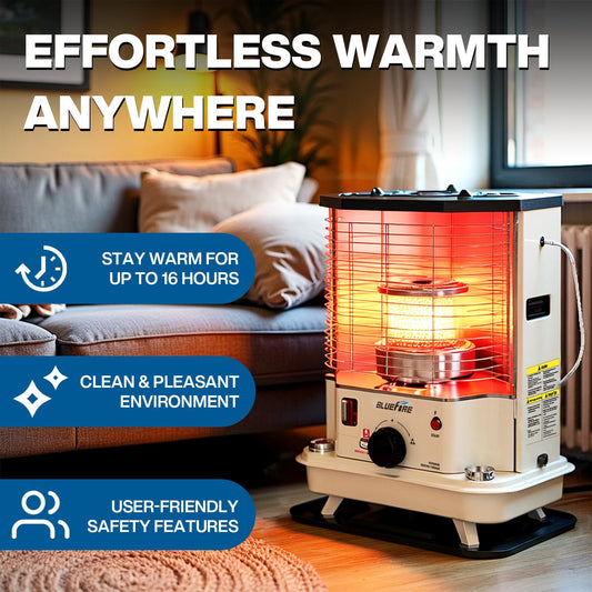 Bluefire Indoor & Outdoor Kerosene Radiant Heater,11000BTU,Dual-Use Cordless Space Heater for Home, Garage, Basement, and Camping,