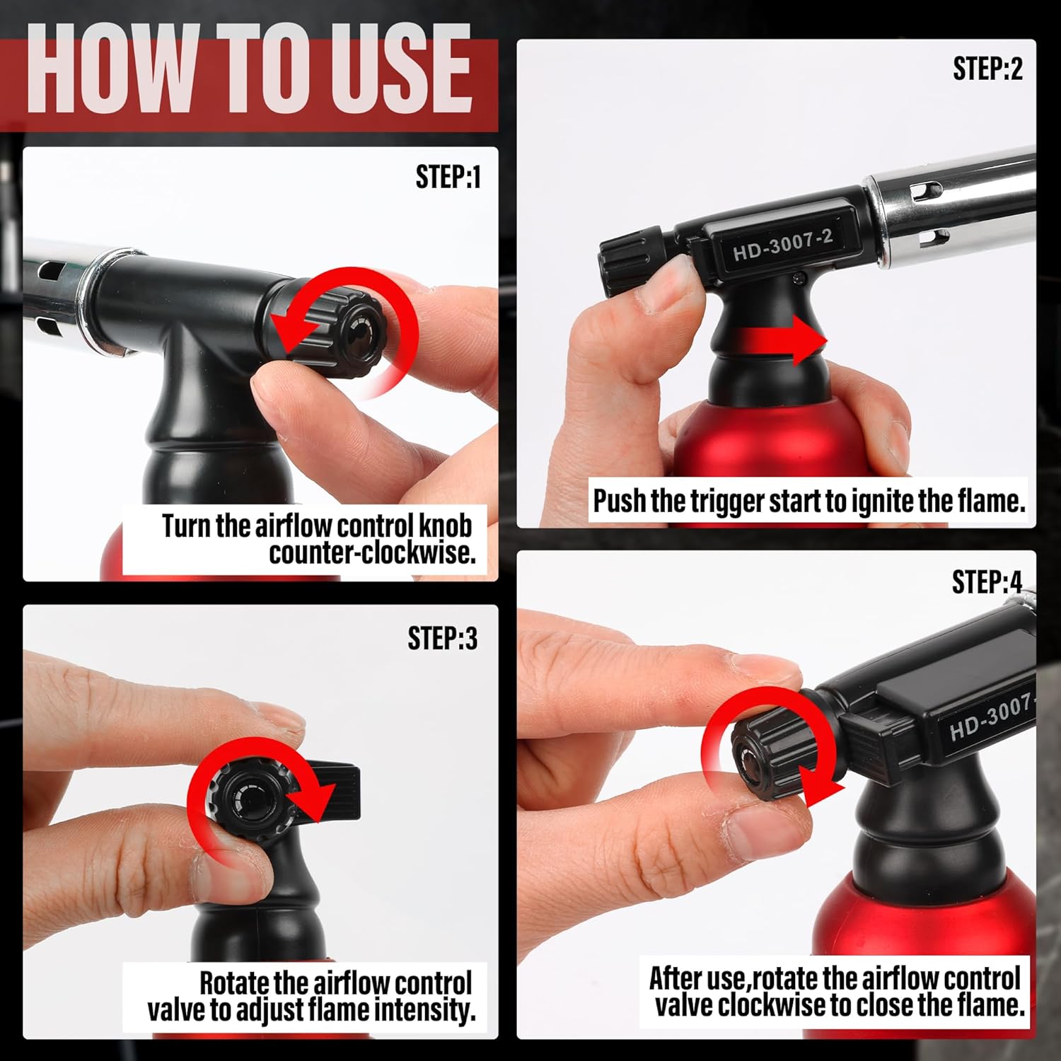 - 【Great Gift Idea & Versatile】 it‘s all purpose daily tool for any American families. No matter you are searing steak or BBQ,lighting cigar or smoking cocktails, caramelizing for Creme Brulee, making jewelry or DIY handicraft, starting campfire or charcoals, this portable and powerful torch meet all your needs from cooking to soldering projects.It is a great gift option for any firends or family members. 1-year manufactuer warranty and our 7/24 customer support guarantee your purchase worry-free!