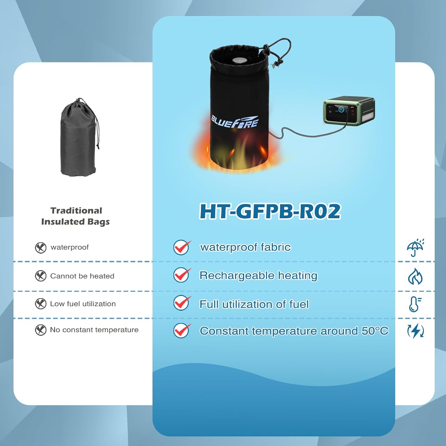 Bluefire Propane Gas Tank Cover Rechargeable Thermostatic Fuel Cylinder Storage Bag Mini Portable Gas Cylinder Insulation Bag For outdoor activities Camping Cooking Traveling